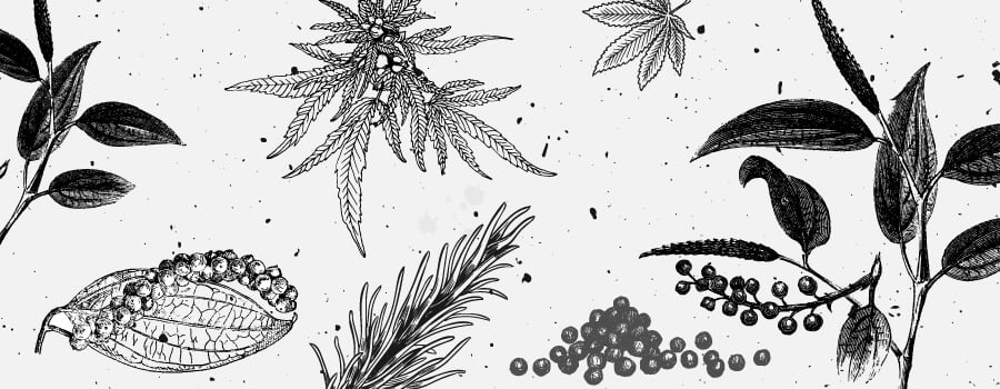 Caryophyllen hat einen würzigen Geschmack, der sich oft in Kräutern und Gewürzen wie schwarzem Pfeffer findet. Es ist als ein starker lokaler Entzündungshemmender und Analgetikum bekannt. Gewürznelken sind bekanntermaßen ein natürliches Heilmittel für Zahnschmerzen und enthalten eine gute Menge dieses Terpens. Von Caryophyllen wird auch gesagt, dass es als Fungizid wirkt.